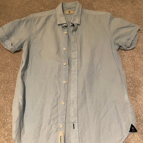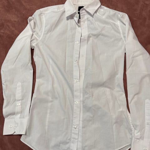 Har påsydde biser av stoff, norsk skjortestørrelse 35/36 (14-16 år ) Kan også være for dame, da str M.