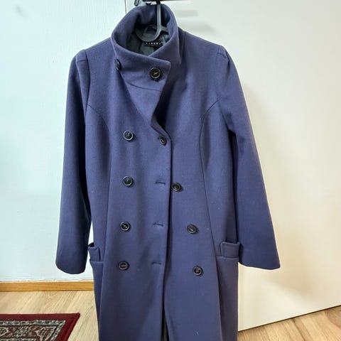 Svært lite brukt ull kåpe fra Sisley (Benetton) Kåpen er svart, klassisk rett modell - noe innsvinget i livet. (Ikke mye) rekker meg som er 180 cm høy rett over knærne. Kneppes med to knapper. Splitt bak