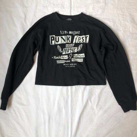 Punk Bershka neongul skulls hodeskalle langermet genser, størrelse small men passer også en medium. Godt brukt men fortsatt fin, har tegn til bruk som vist på bildene.