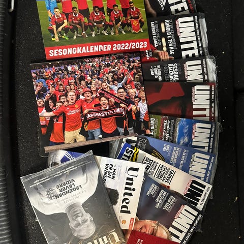 CA. 80 STK MEDLEMSBLADER FOR MANCHESTER UNITED + NOEN LAGBILDER, KALENDER M.M.