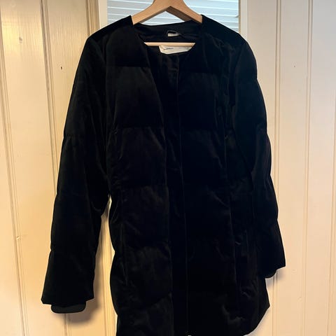 Kjempefin vinterjakke , fløyelsjakke, god og varm. Som ny, lite brukt.Mørk farge, ser ut som svart, men har eitt hint av mørk grønn?. Verdi ca 2000 kr. Finare jakke i virkeligheten enn på bildet. Merke: second Female. Str L. Kjøper betaler porto eller kom å prøv viss du er i nærheten.