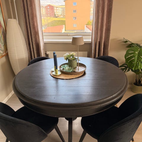 Farger: brun med trekorn (bordplate) + svart (ramme)