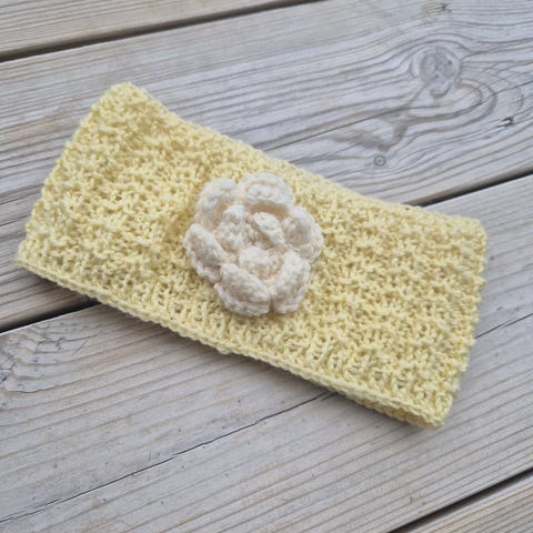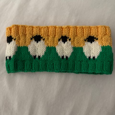Hjemmestrikket pannebånd 5-8 år (pent brukt)
