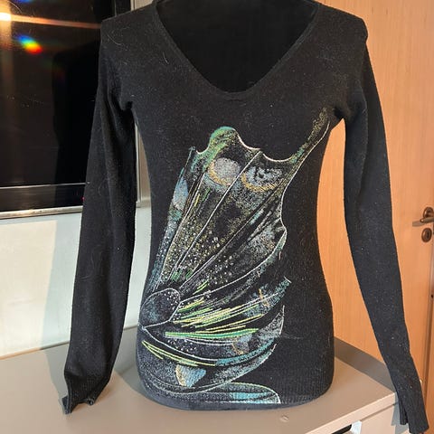 Lysegrå Tally Weijl collegegenser / crewneck langermet genser, med retro Iconic 90s og Made in the 90s svarte bokstaver, brukt en gang, står størrelse XXS men synes det er en S, jeg er iallfall ikke en XS.