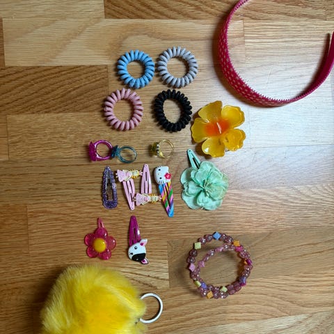Hårpynt kr 5 pr stk. De rød og blomstrete er solgt