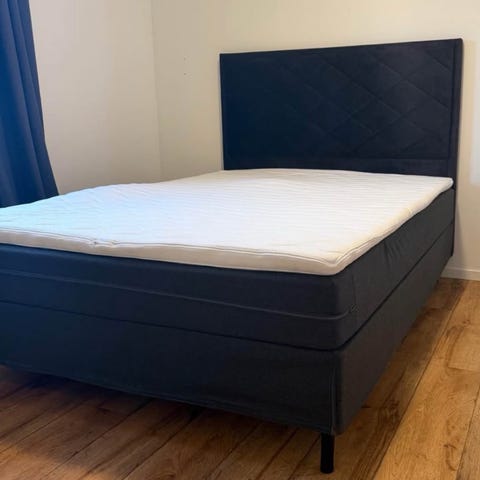 Jensen hodegavl selges. Har ikke vært montert på seng, kun stått på gulvet bak sengen. Kan monteres med bolter/skruer på Jensen kontinentalseng, skruer/bolter og bruksanvisning følger med. Men den står fint på gulvet bak sengen uavhengig av produsent.