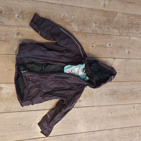 Missing Link er vind og vanntett, har lite hull på ene ramen, se bilde, mangler også en knapp, som har ingen betydning.