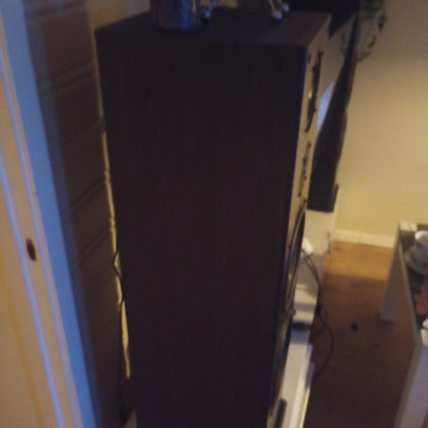 Litt merker på trekket til høyttalerne, synes på bildene. Til gjengjeld følger det med et sett med helt ubrukt til høyttalerne. Så her er det bare å bytte om og de ser ut som nye!