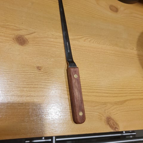 Brevåpner, kniv med teak treskaft. Maul rostfrei / rustfri. Retro