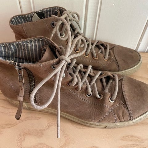 Ingen av disse skoene har blitt brukt, men har ligget oppbevart. Kan ha noen mindre merker pga det men ikke noe lukt eller lignende.