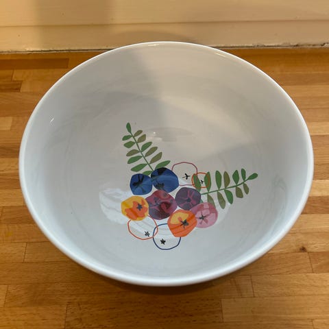 cirka 23.5 cm i diameter; høyde - cirka 16 cm