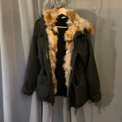 Fin kåpe i imitert skinn. Nesten ikke brukt, henger bare i skapet!