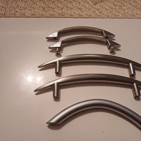 Har 8stk. flotte, dekorative handtak som ikkje lenger er i bruk. Framstår som nye. Det eine bildet, er berre foråfå illustrert kva pris dei ligg på. Kjempeflotte i eit eldre hus, hytta eller hus med slik stil. Selger helst samlet til HBO kr 1500,-