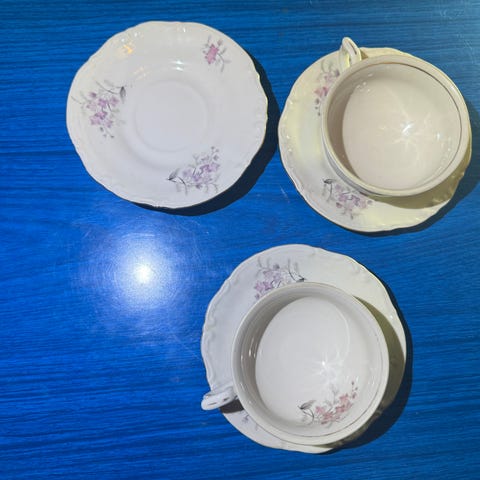 Lite brukt, og pent , Te service m. 4 kopper, 6 fat, + 1 stort fat.