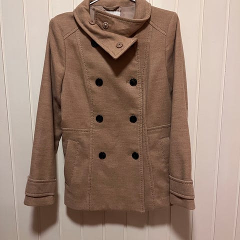 Tynn sommerkåpe (av bomull) i lekkert svart/hvitt mønster kjøpt i New York, brukt 1 gang. Kåpen har rund hals, 3/4 armer med volager nederst og store sorte knapper med sølvkant som et ekstra blikkfang. Kjøper dekker eventuell frakt.