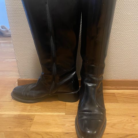 Svarte høye støvletter med glidlås i siden. Foret.