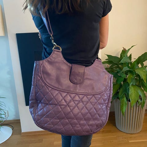 Skinn veske Begunder i farge, mot lilla. Re-designed