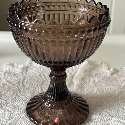 Denne retro glass skål på stett er i veldig god stand med få bruksmerker se bilder.