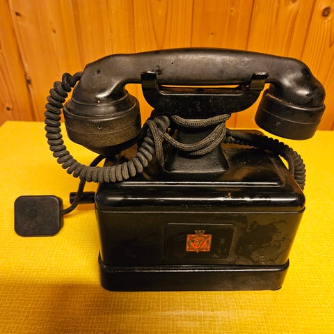 Vintage 90-talls Doro (The country store telephone) med bruksanvisning/skruer til oppheng selges 800kr + frakt. Trykknapper og rom/skuff under. Ca 45*20 cm u/rør på siden.