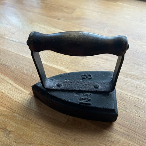 i messing eller bronse. Eierinitialer BMR. Har jernbolten intakt.