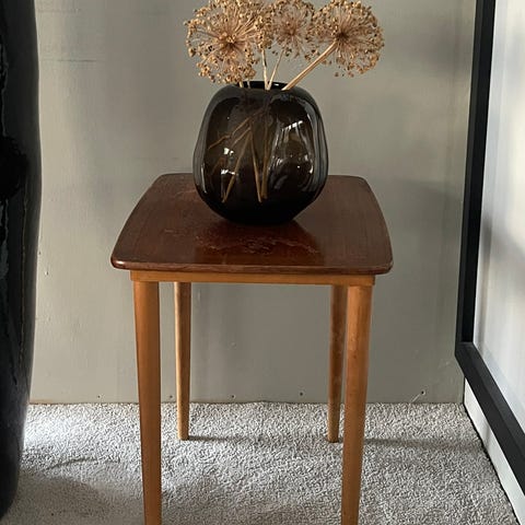 Et elegant teak spisebord fra 1970-tallet, velbrukt, men fremdeles grunnleggende godt som nytt. Med litt overflatebehandling blir det like fint som nytt :-)! Vakre linjer, lett å flytte på. BORDET MÅ HENTES I FØRDE SENTRUM I UKE 8 (17.-20.02.)