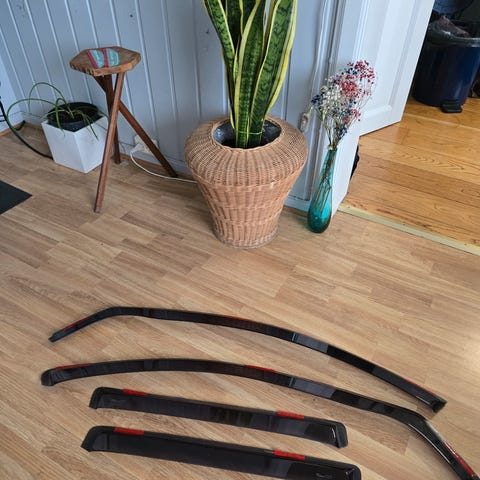 Er aldri montert på bil, så den originale dobbeltsidige tapen er ikke brukt.