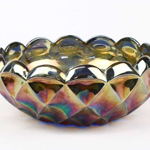 Karaffel med glass på glassfat grønt vintage retro Eda