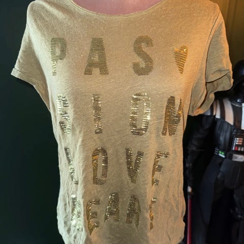 Ny t-skjorte i strl S - grønn med sølvskrift.