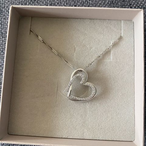 Jeg selger denne helt nye halskjeden med anheng. I ekte sølv, gullbeleg og stemplet er 925. Jeg kjøpte i butikken Gullfunn. Lengde 44, 5 cm