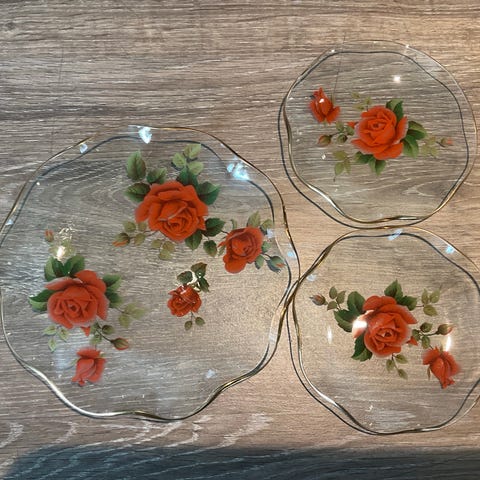 VINTAGE/RETRO "GLASS FAT MED GULL KANT OG BLOMSTER MOTIV "