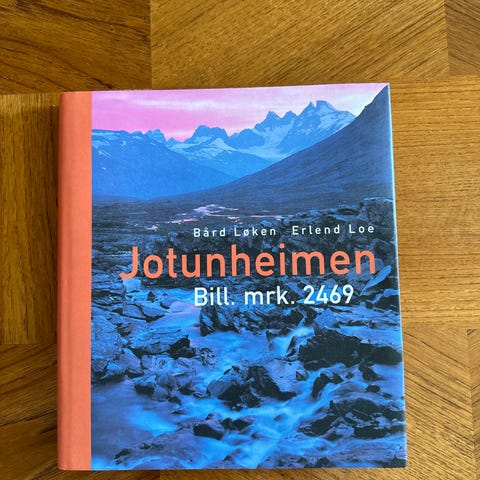 "Jotunheimen Bill.mrk. 2469" (2000). Erlend Loe og Bård Løken (foto). Innbundet med bokomslag. 164 s. Rikt illustrert. Ny.