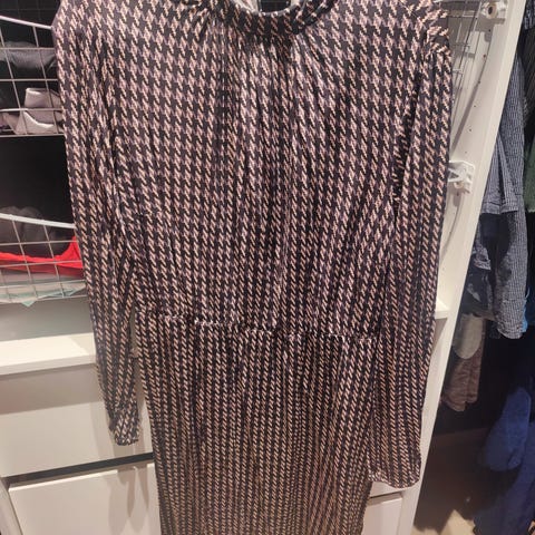 Sitter godt på, veldig komfortabel (også på hjemmekontor 😅), fine detaljer på skuldrene (lette puffermer), glidelås bak