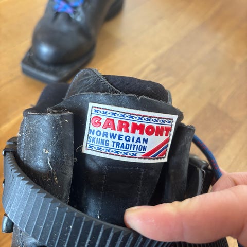 Garmont Veloce Telemarkstøvler. Størrelse tilsvarer 38, men det er ikke synlig på støvlene. To spenner og powerstrap sørger for stabilitet. Gåfunksjon for topptur / rando. Kan sendes mot at kjøper betaler frakt.