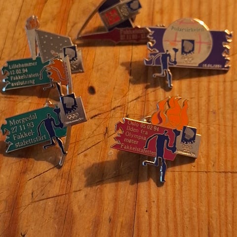 Lot med 14 stk OL pins selges samlet 150,- + evt porto.