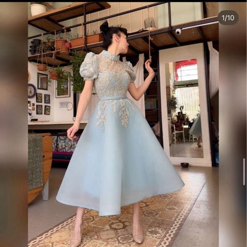 Kjolen er brukt 1 gang i bryllup og er kjøpt i utlandet fra en designer butikk, "Terrible". ( Finnes ikke en lignende i norge ).