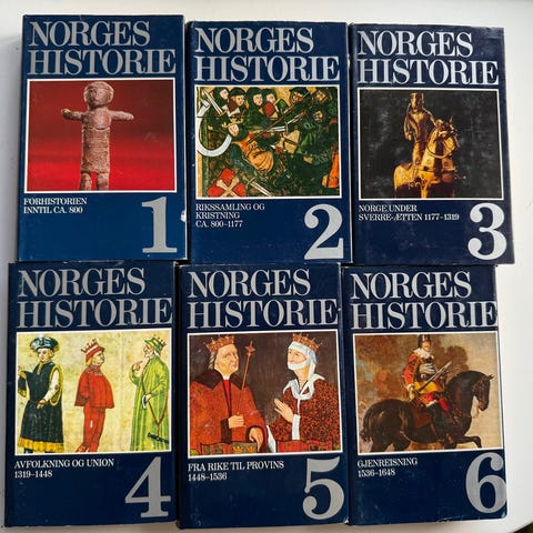 Norges historie utgitt av Cappelen. Bind 1-15. Aldri vært lest og ligger fortsatt i original emballasje. Ser helst at det blir hentet. Betaling med bankoverføring, vipps eller kontant.