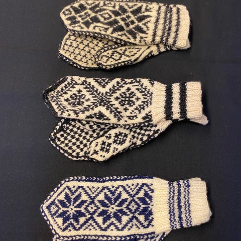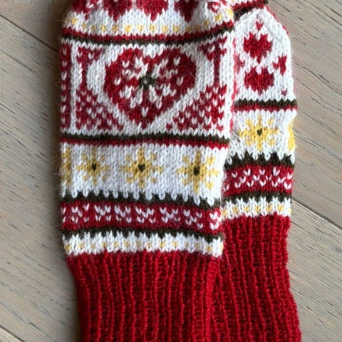 Strikket i ulike typer ullgarn . Flere størrelser.