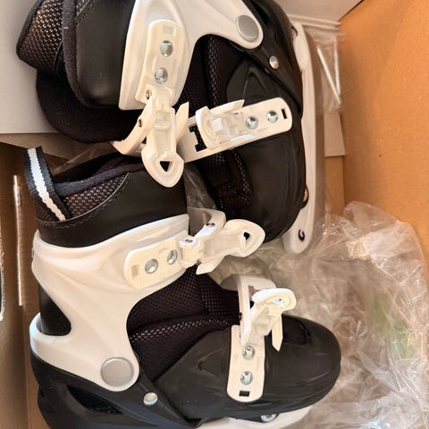 Nye skøyter frå lager etter nedlagt butikk . 1 par Svarte nr 34, 1 par Gule nr 36 og 1 par Svarte nr 36 .kr 399. Selgast kr 200.-