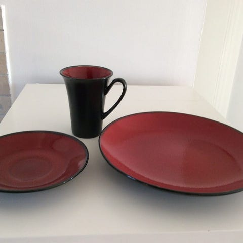 HH design, burgunder rødt kaffeservise til 6 personer