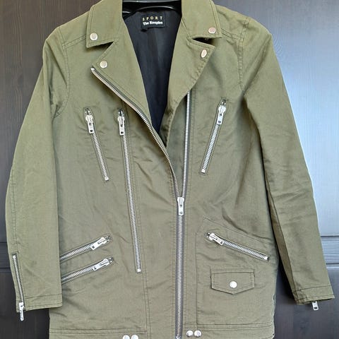 Matt og behagelig Mosegrønn, UBRUKT. Grei JAKKE for hele året… Står 36 på denne; er mer en M!!