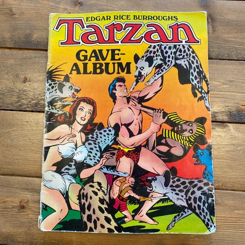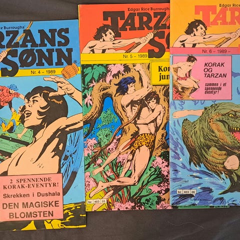 Tarzans sønn nr 3 1984 bladet har noen større bretter på omslaget ellers er det fult av mindre rifter og bretter gjennom hele bladet, men fortsatt et fint leseeksemplar 12,-