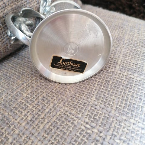 Kongetinn produseres ikke lenger. Tinn bør vaskes for hånd. Tåler kokende vann. I oppvaskmaskin med sterke vaskemidler vil tinn mørkne. Det må da pusses oftere med stålull fuktet i lunkent såpevann. Puss skaftene på langs. Produsent HARDANGER SYLVPLETT: Kinsarvik Norway.
