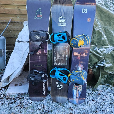 Selger unna familiens snowboard og snowboard-sko til både barn og voksne. Har også noen hjelmer. Ta kontakt for mer informasjon.