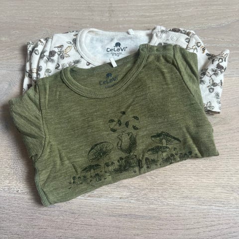 Søt kjole frå CeLaVic str 90/2 år. Ull ytterst og bambusviskose innerst, trykknapp på ein skuldra. Ubrukt.