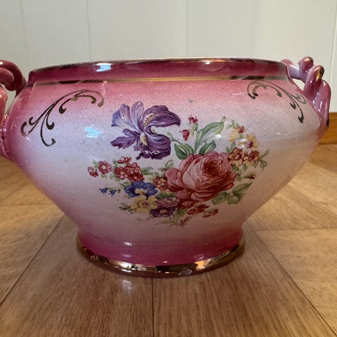 Potte med tagger, uten mønster, fra 50/60 tallet, diameter 11, høyde 10 selges kr 100