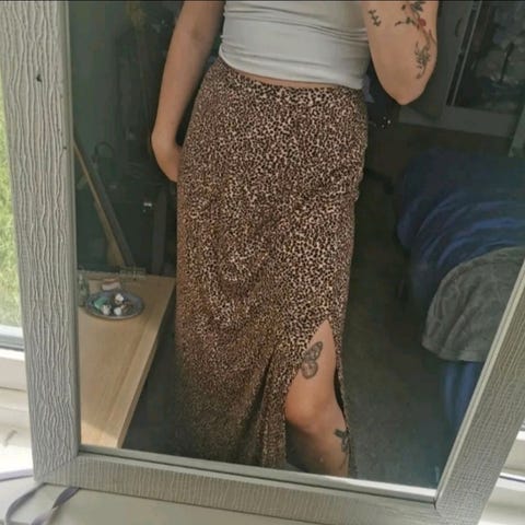 Skjørt knapt brukt str m. Strikk i livet så passer ser fler str