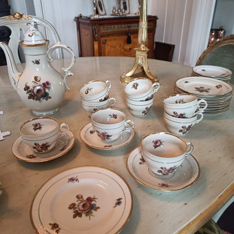 "Kjøbenhavns Porcellains Maleri A/S" Rosenborg kaffekanne og fløtemugge selges