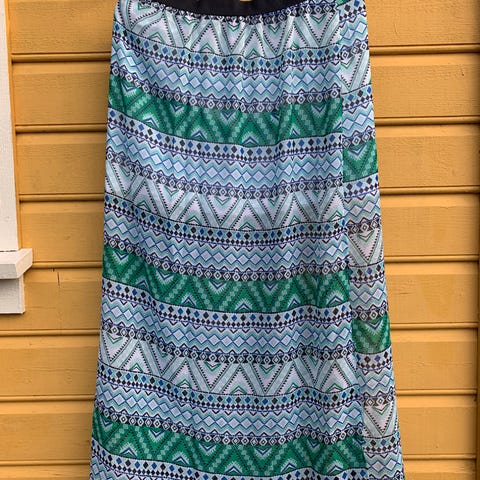 Selges da jeg har kjøpt feil størrelse. Denne er helt ny ligget nedpakket i emballasje derfor er den ustryken på bildet. Skjørte er i str 42 og er lang. Passer fint til hverdagsbruk eller selskap.