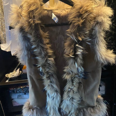 Lekker Style Butler pels jakke. Denne er bare prøvd på - ikke brukt. Hengt pent, og kjølig på sommer. Farge blå / grå.