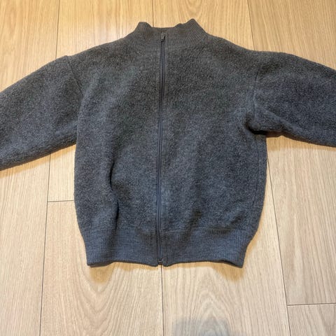 Grå ubrukt jakkegenser str 86. 48 % ull.